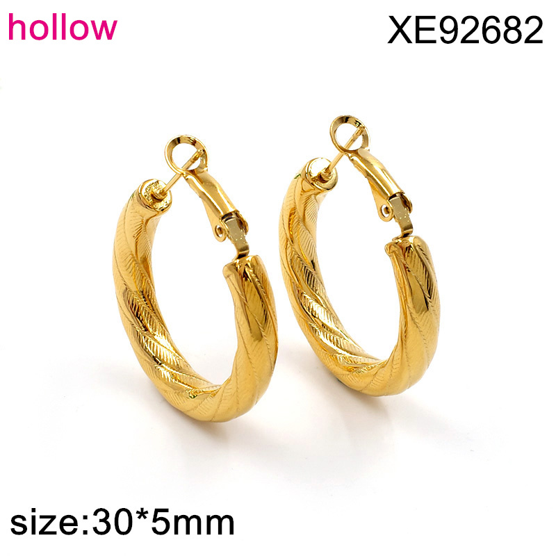 Level B Stainless Steel New Trendy Women Jewelry Hollow Round Golden Earrings
