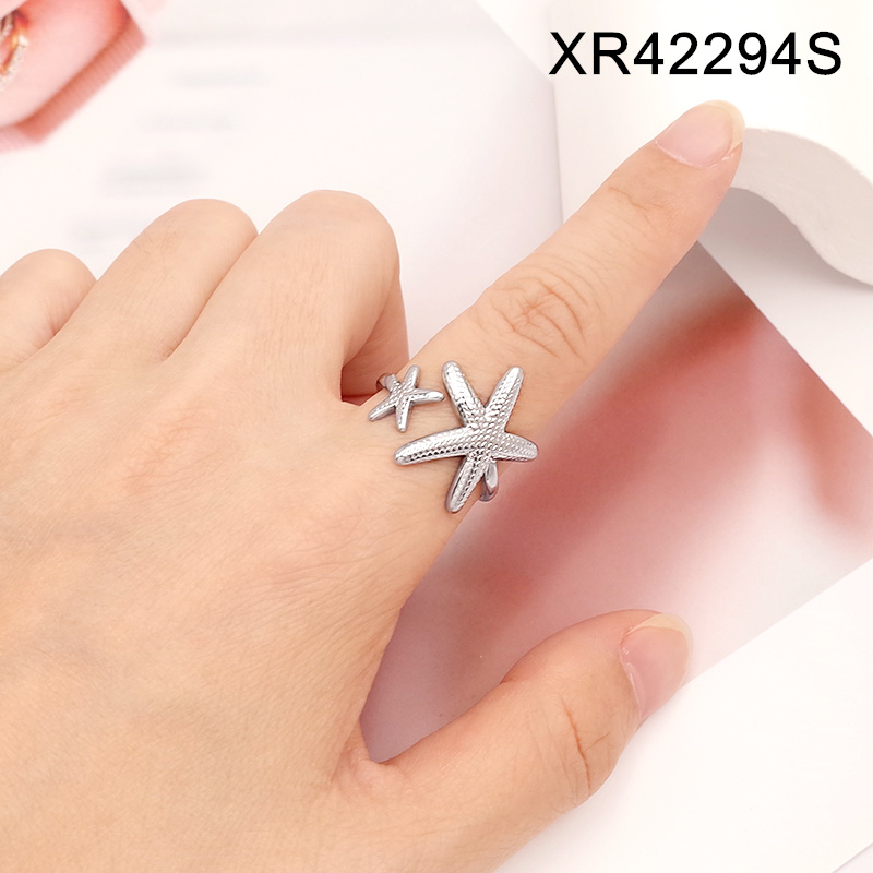 Level A Stainless Steel New Trendy Women Jewelry Summer beach Animal Starfish Steel color Open Rings;Ring size can be adjusted freely