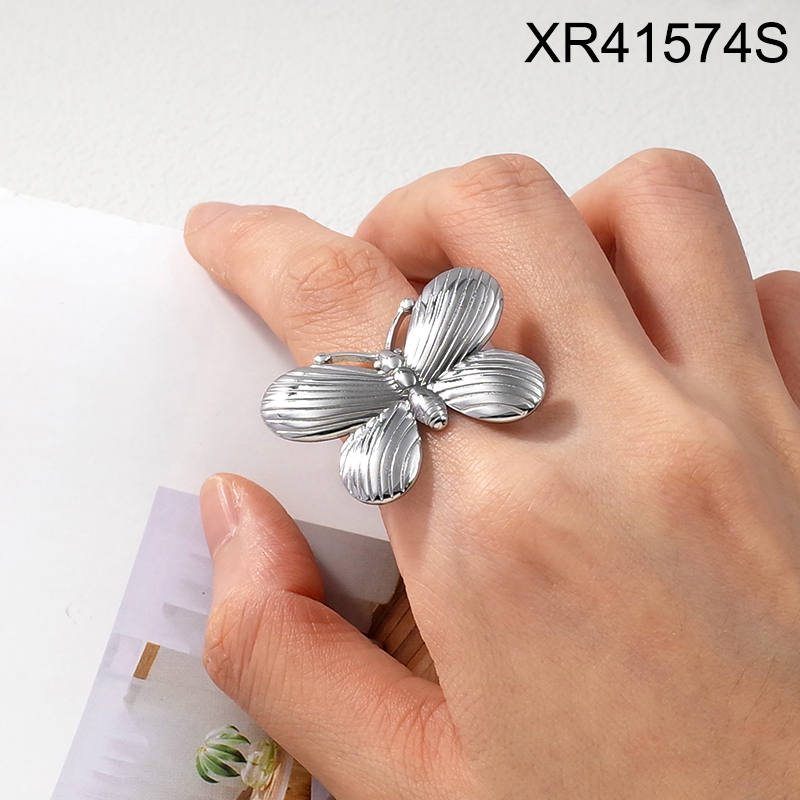 Level A Stainless Steel New Trendy Women Jewelry Animal Butterfly Steel color Open Rings;Ring size can be adjusted freely