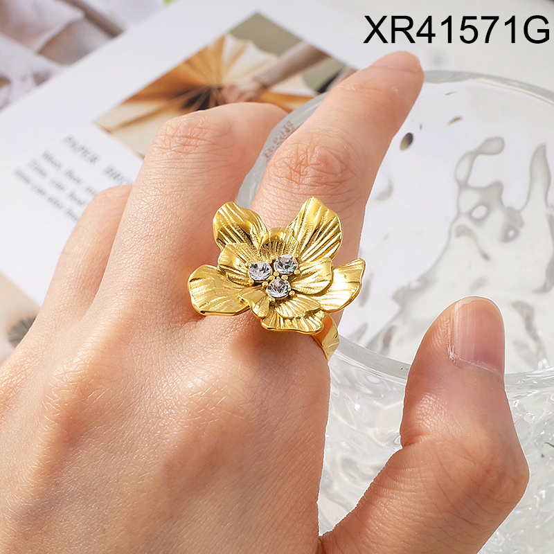Level A Stainless Steel New Trendy Women Jewelry Flower Golden Open Rings;Ring size can be adjusted freely
