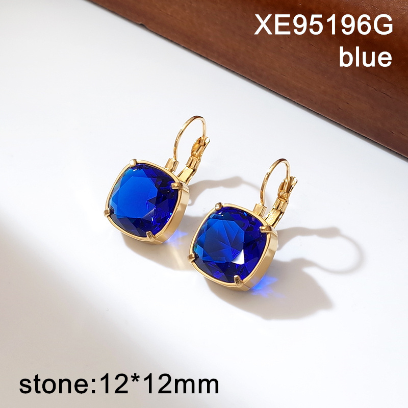 Home > Level A Stainless Steel New Trendy Women Jewelry Blue Square Crystal zirconium Golden Earrings