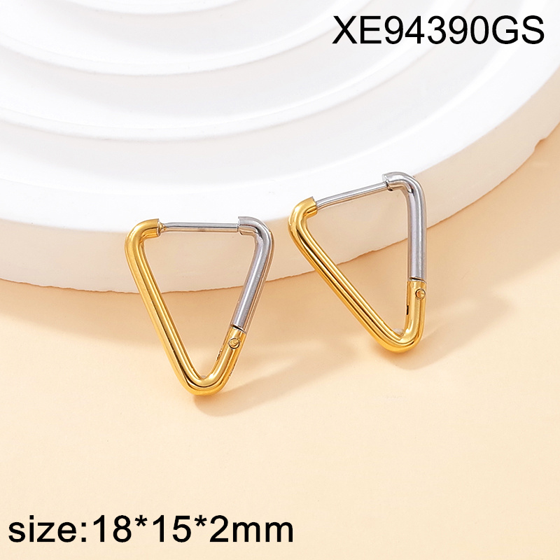 Home > Level A Stainless Steel New Trendy Women Jewelry Triangle two-tone Hoop Earrings