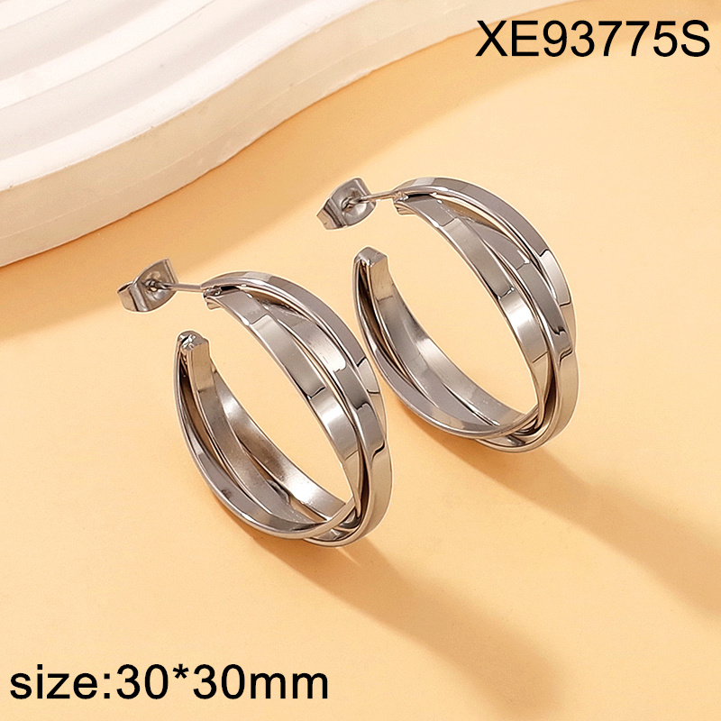 Level A Stainless Steel New Trendy Women Jewelry Steel color C-Shape Style Earrings