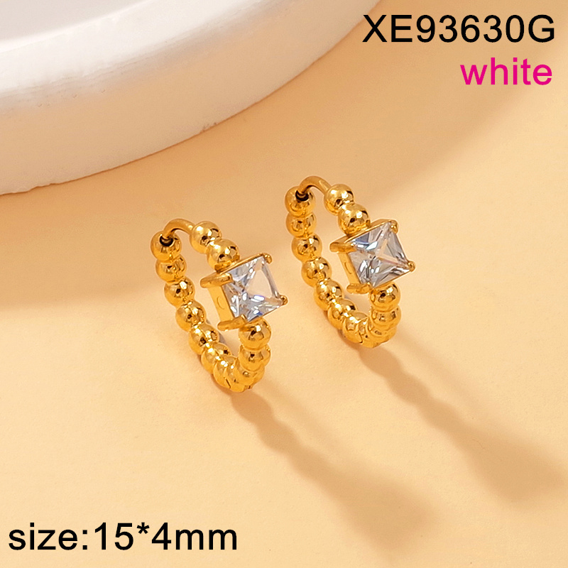 Home > Level A Stainless Steel New Trendy Women Jewelry Round Bead Studded Square White Glass Golden Earrings
