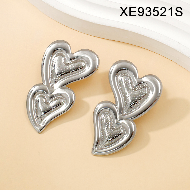 Home > Level A Stainless Steel New Trendy Women Jewelry Heart Steel color Valentine's Day Earrings