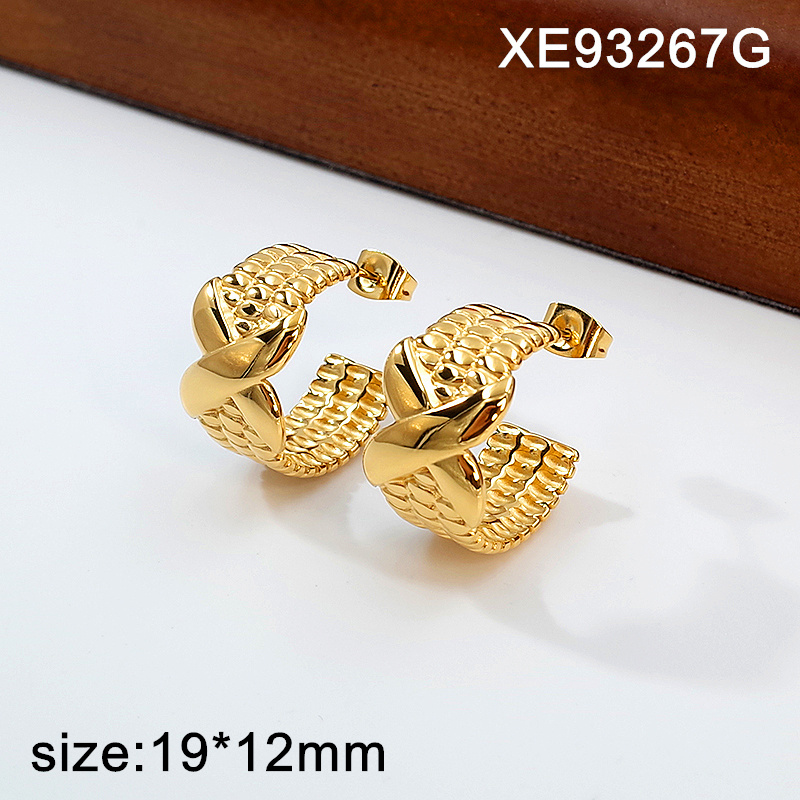 Level A Stainless Steel New Trendy Women Jewelry Golden Letter X C-Shape Style Earrings