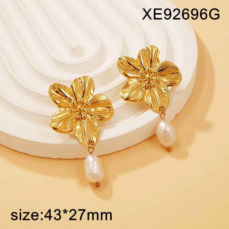 Level A Stainless Steel New Trendy Women Jewelry Pearl Style Flower Golden Earrings