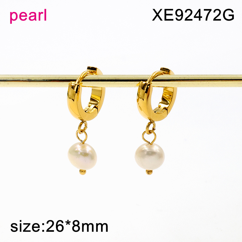 Home > Level A Stainless Steel Jewelry New Trendy Pearl Golden Hoop Earrings