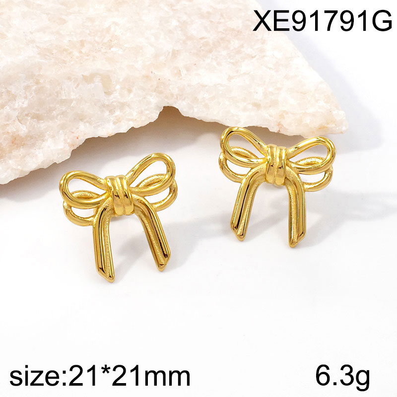 Home > Level A Stainless Steel Jewelry New Trendy Bowknot Golden Earrings
