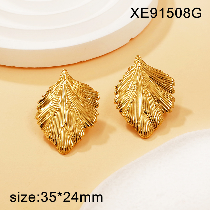 Home > Level A Stainless Steel Jewelry New Trendy Leaf Golden Earrings