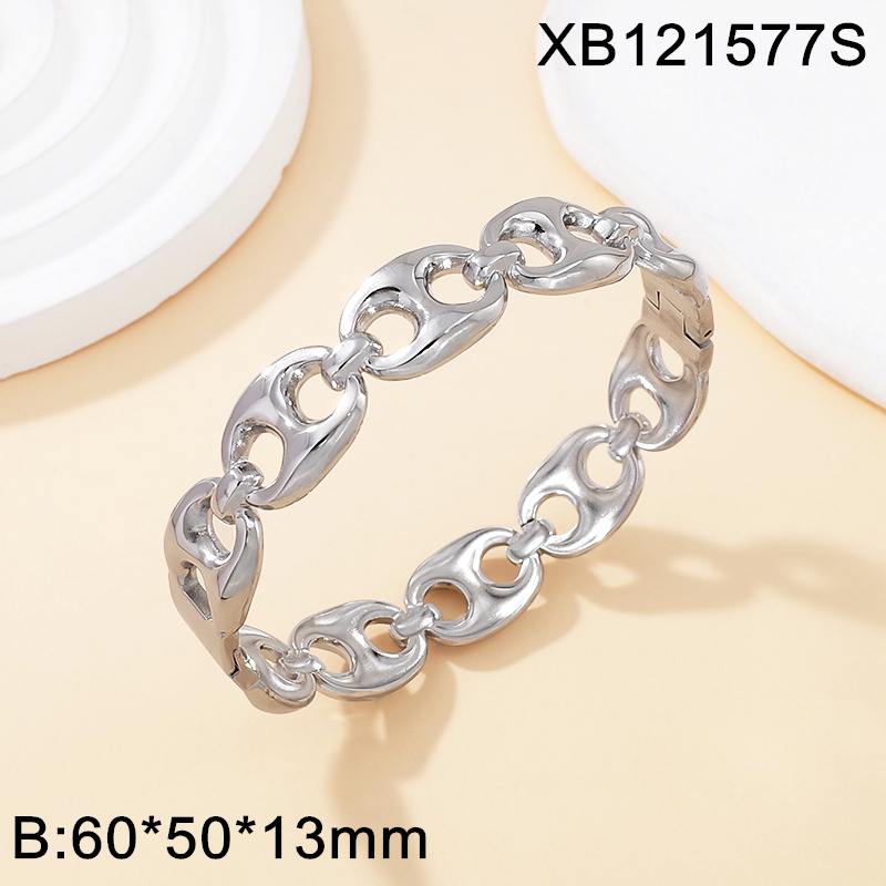 Home > Level A Stainless Steel New Trendy Women Jewelry Oval Pig nose Steel color Bangle