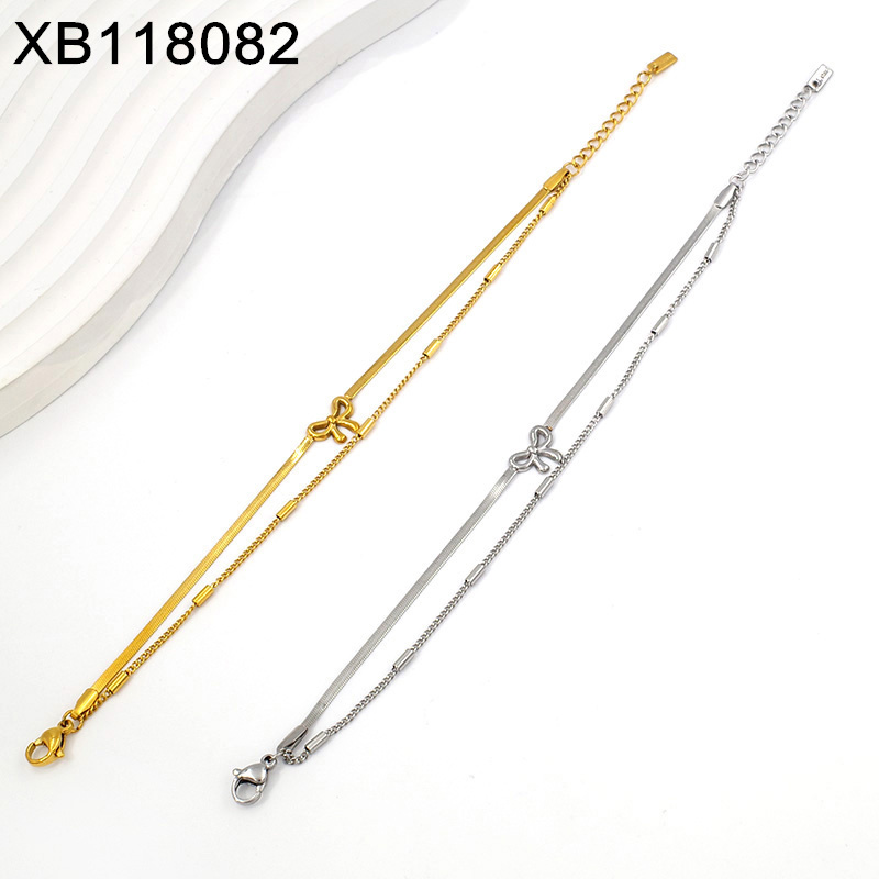 Home > Level A Stainless Steel New Trendy Women Jewelry Two Layers Chain Bowknot Bracelet