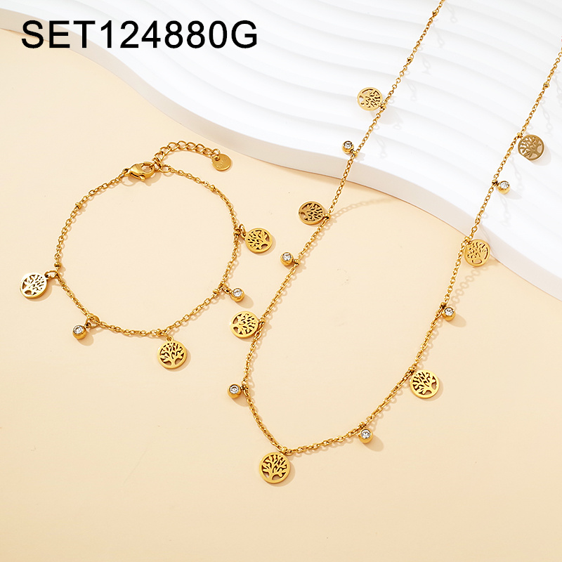 Home > Level A Stainless Steel New Trendy Women Jewelry Tree Golden SET