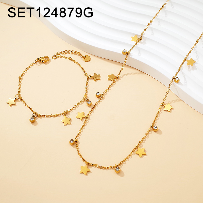 Home > Level A Stainless Steel New Trendy Women Jewelry Star Golden SET