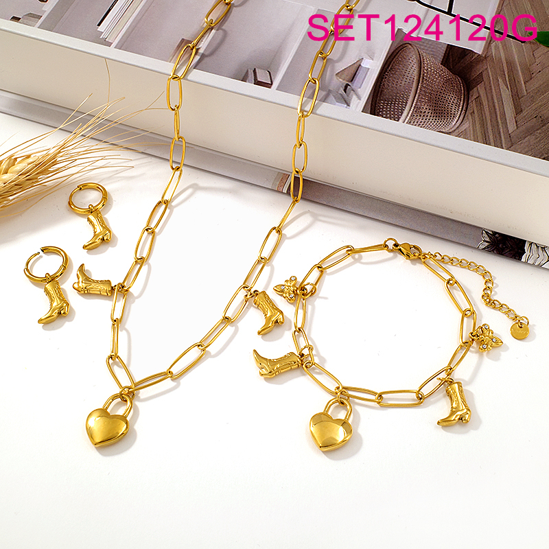 Level A Stainless Steel New Trendy Women Jewelry Heart Shoe Animal Bee Golden Valentine's Day 3pcs SET