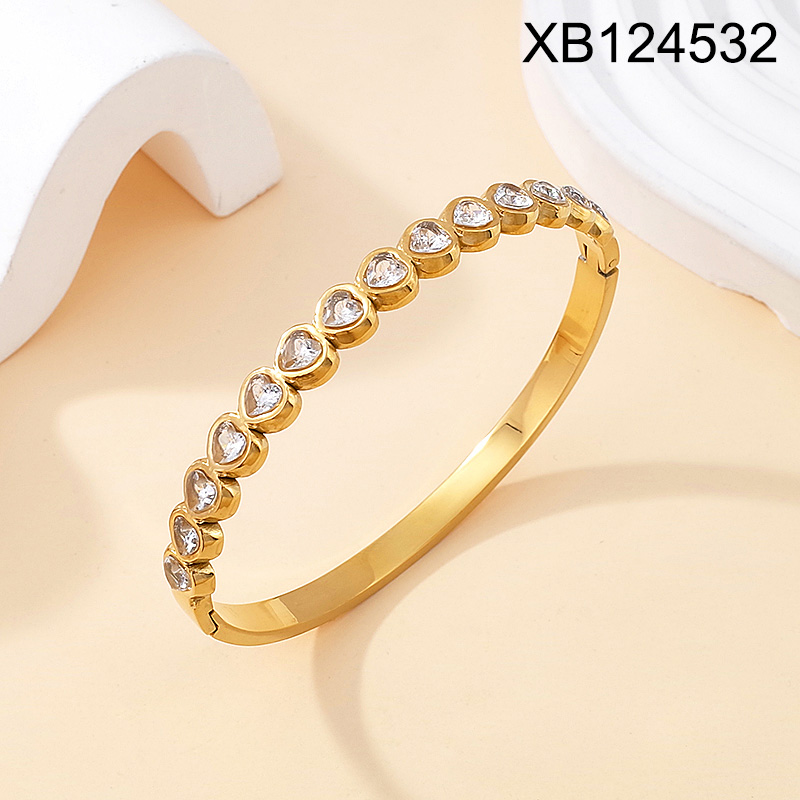 Home > Level B Stainless Steel New Trendy Women Jewelry Heart Golden Valentine's Day Bangle