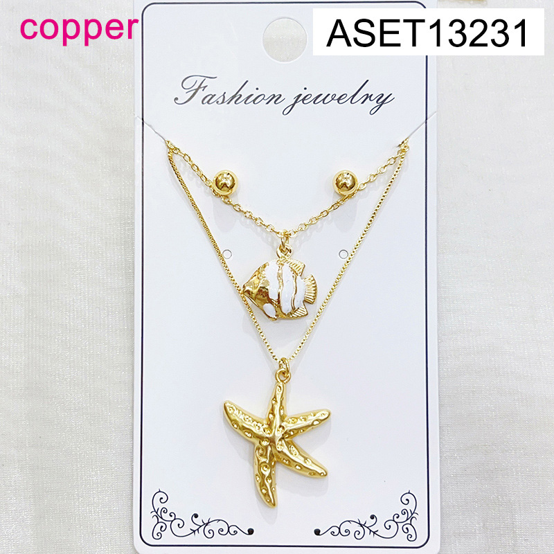 Level B Fashion Jewelry New Trendy Women Jewelry Two Layers Chain Summer beach Animal Starfish Fish Golden SET;Material:copper (cobre)