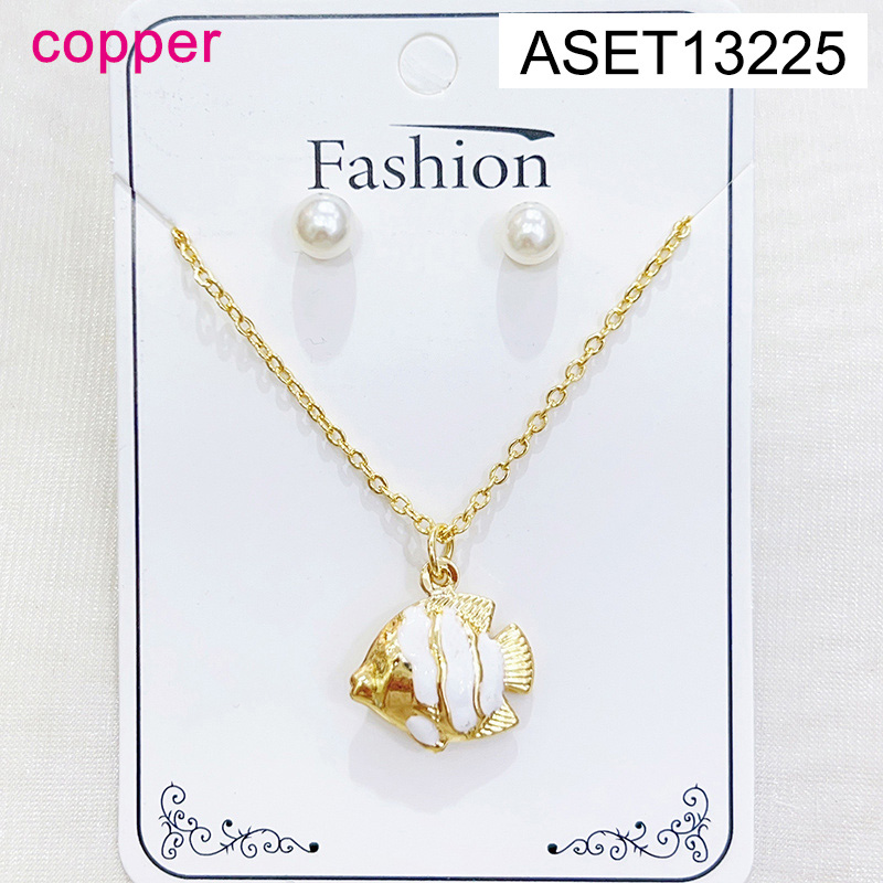 Level B Fashion Jewelry New Trendy Women Jewelry Summer beach Animal Fish Golden SET;Material:copper (cobre)