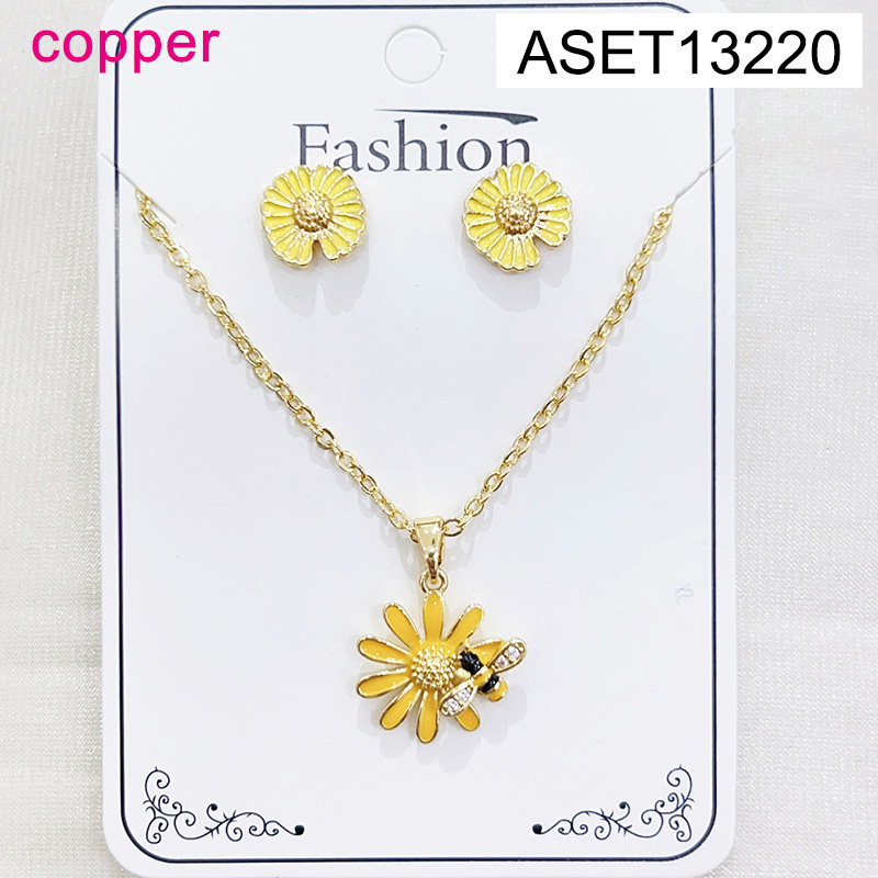 Level B Fashion Jewelry New Trendy Women Jewelry Flower Animal Bee Golden SET;Material:copper (cobre)