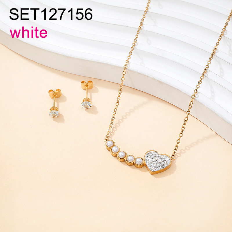 Level B Stainless Steel New Trendy Women Jewelry Pearl Style/Plastic Beads Heart Golden Valentine's Day SET