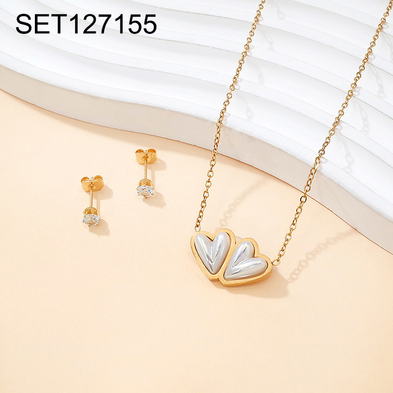 Level B Stainless Steel New Trendy Women Jewelry Pearl Style/Plastic Beads Heart Golden Valentine's Day SET