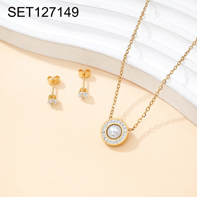 Level B Stainless Steel New Trendy Women Jewelry Pearl Style/Plastic Beads Round Golden SET