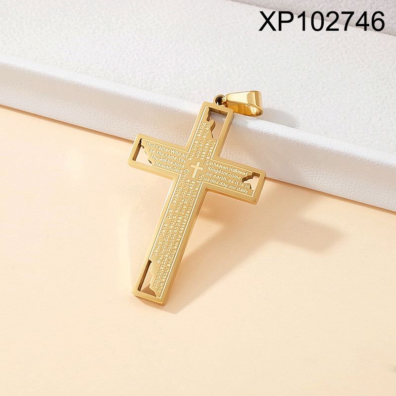 Level B Stainless Steel New Trendy Man Jewelry Cross Scriptures Golden Pendant
