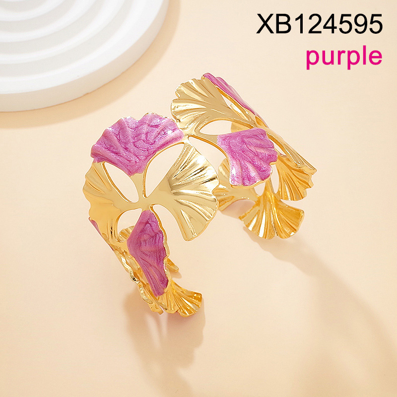 Level C Stainless Steel New Trendy Women Jewelry Drip Oil/Enamel Ginkgo leaf Golden Open Bangle;Bangle size can be adjusted freely