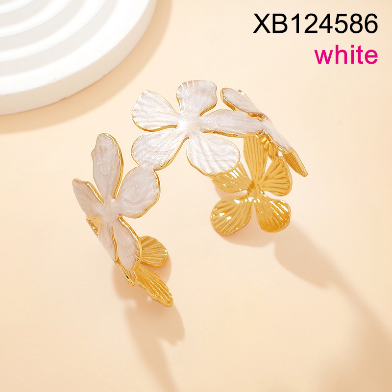 Level C Stainless Steel New Trendy Women Jewelry Drip Oil/Enamel Flower Golden Open Bangle;Bangle size can be adjusted freely