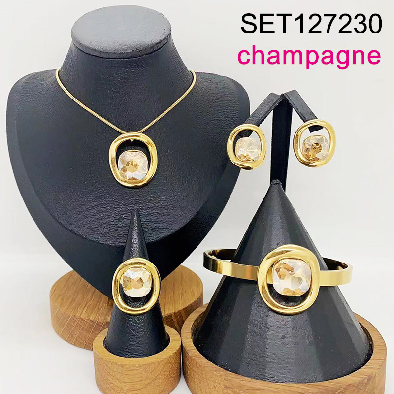 Level B Stainless Steel New Trendy Women Jewelry Champagne Square Glass Golden 4pcs SET