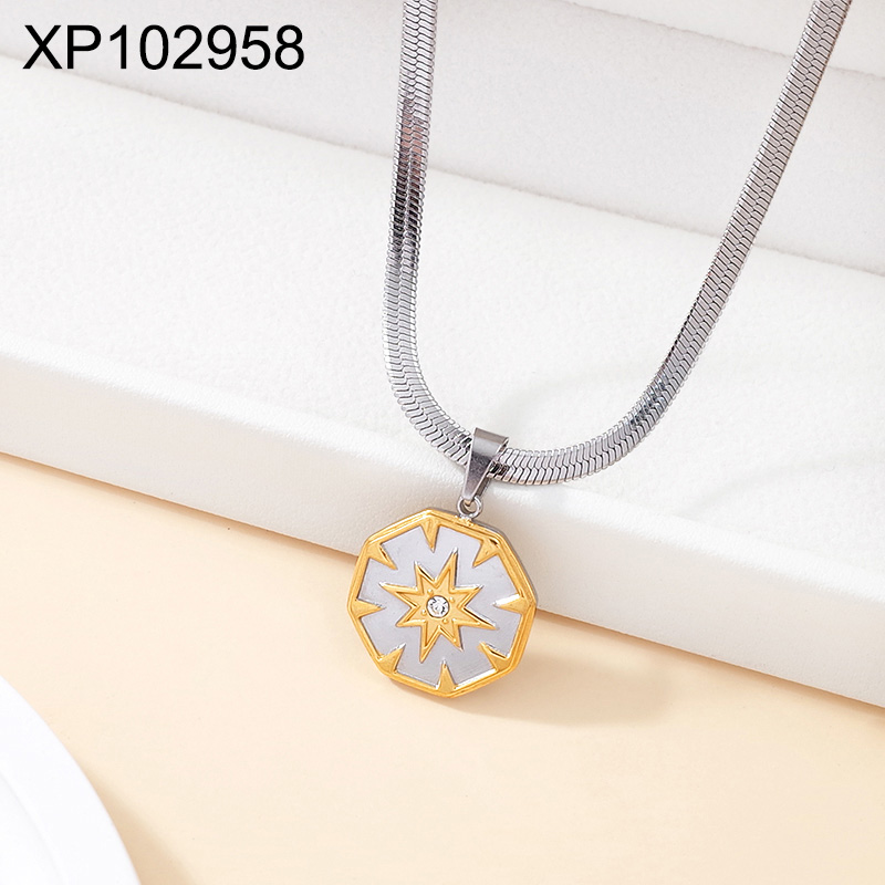 Level B Stainless Steel New Trendy Women Jewelry Eight-Pointed Star Two Tone Pendant
