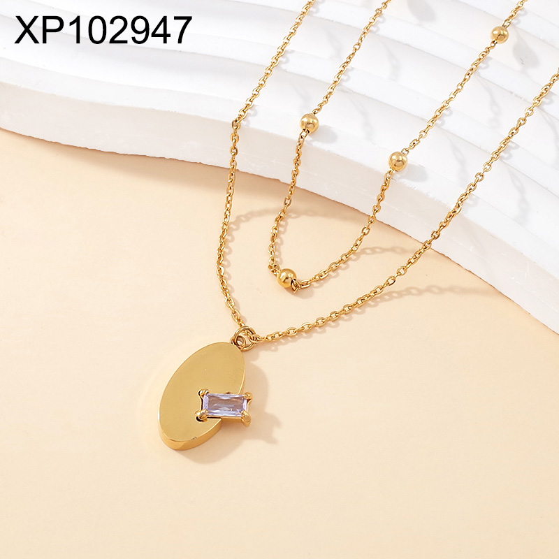 Home > Level B Stainless Steel New Trendy Women Jewelry Two Layers Chain Oval Golden Pendant