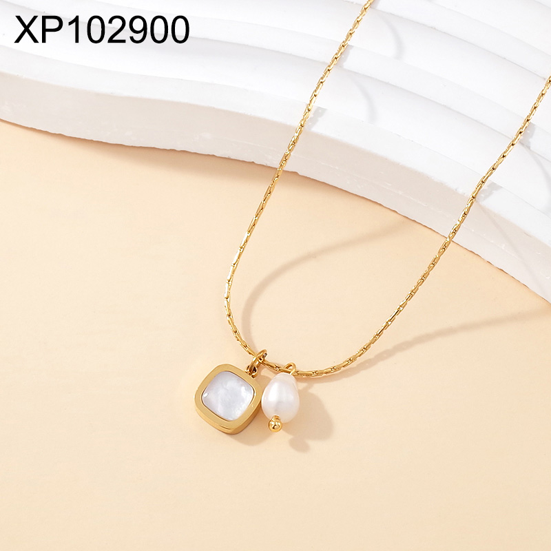 Level B Stainless Steel New Trendy Women Jewelry Pearl Style Square Golden Pendant