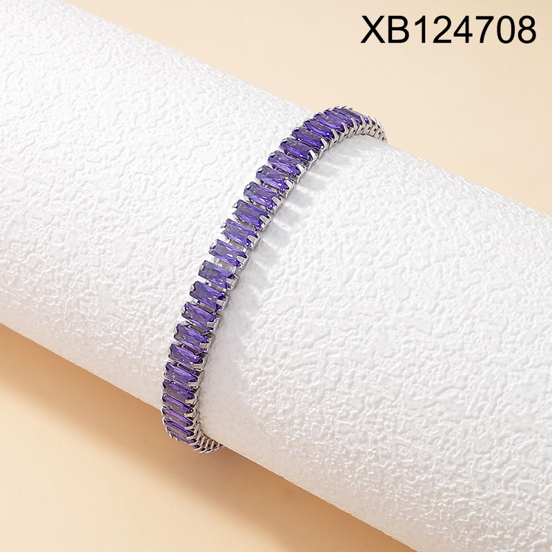 Home > Level B Stainless Steel New Trendy Women Jewelry Steel color Purple Rectangle Zircon Bracelet