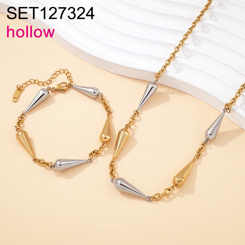 Home > Level B Stainless Steel New Trendy Women Jewelry Hollow Water Drip Two Tone Chain SET
