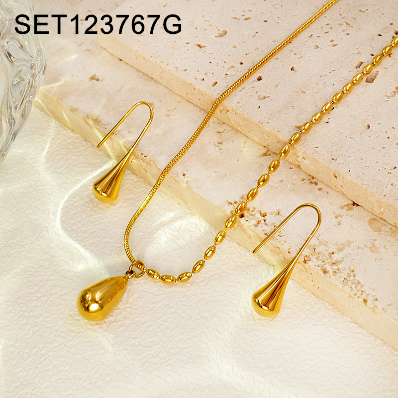 Level A Stainless Steel New Trendy Women Jewelry Solid Water Drip Golden SET