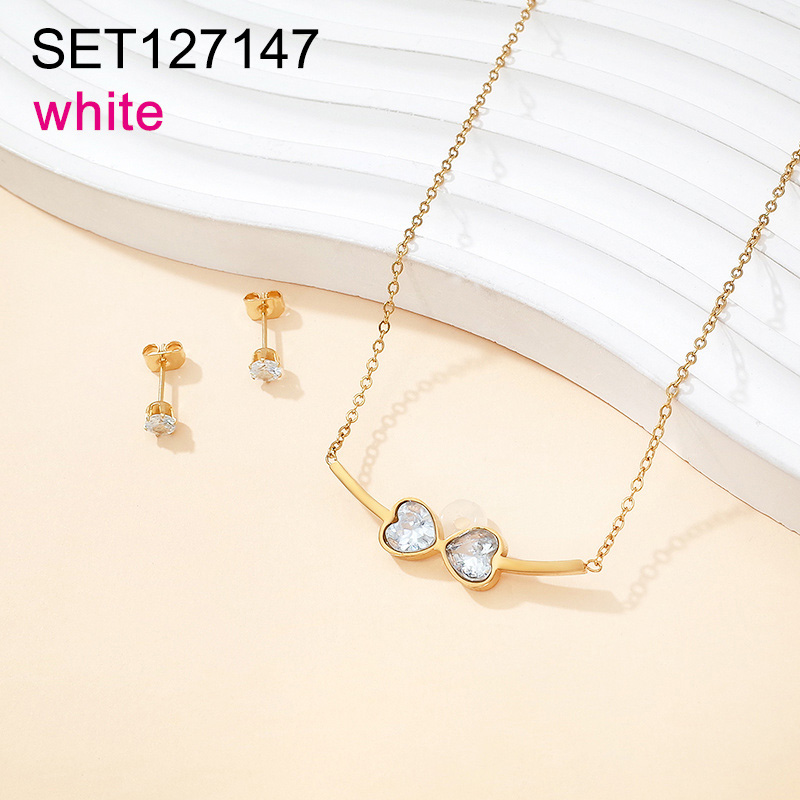 Home > Stainless Steel Sets > Semi-precious Stones Jewelry Sets > Level B Stainless Steel New Trendy Women Jewelry Heart Golden Valentine's Day SET