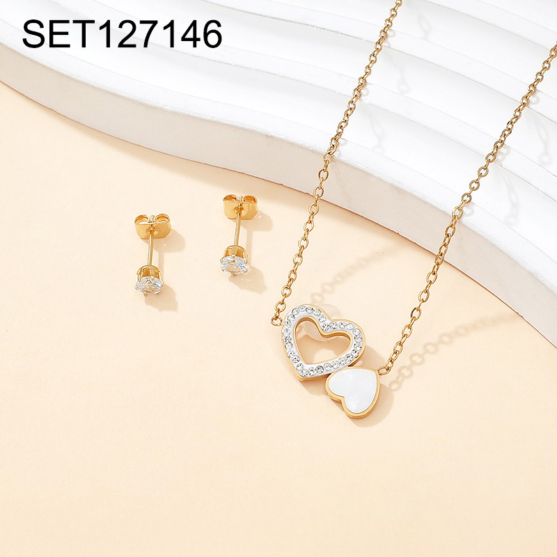 Home > Stainless Steel Sets > Semi-precious Stones Jewelry Sets > Level B Stainless Steel New Trendy Women Jewelry Heart Golden Valentine's Day SET