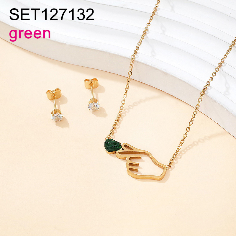 Home > Stainless Steel Sets > Semi-precious Stones Jewelry Sets > Level B Stainless Steel New Trendy Women Jewelry Heart Golden Valentine's Day SET