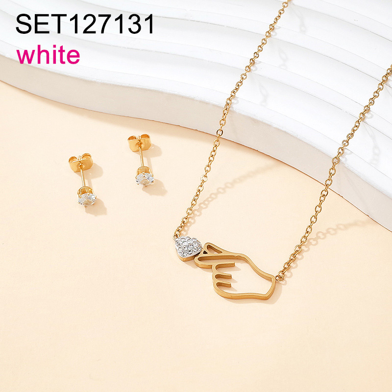 Home > Stainless Steel Sets > Semi-precious Stones Jewelry Sets > Level B Stainless Steel New Trendy Women Jewelry Heart Golden Valentine's Day SET