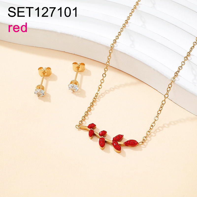 Home > Stainless Steel Sets > Semi-precious Stones Jewelry Sets > Level B Stainless Steel New Trendy Women Jewelry Leaf Golden SET