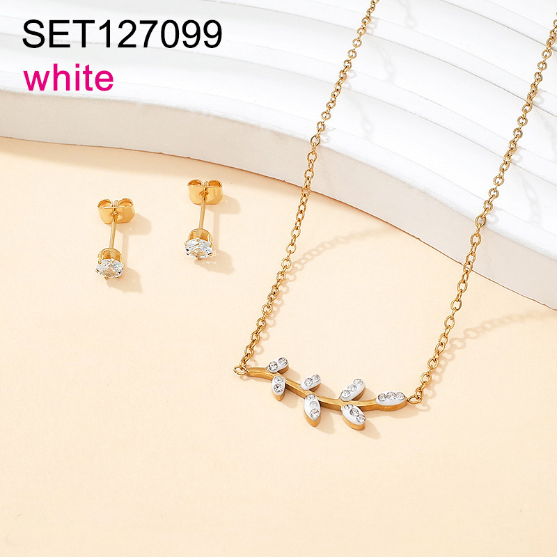 Home > Stainless Steel Sets > Semi-precious Stones Jewelry Sets > Level B Stainless Steel New Trendy Women Jewelry Leaf Golden SET