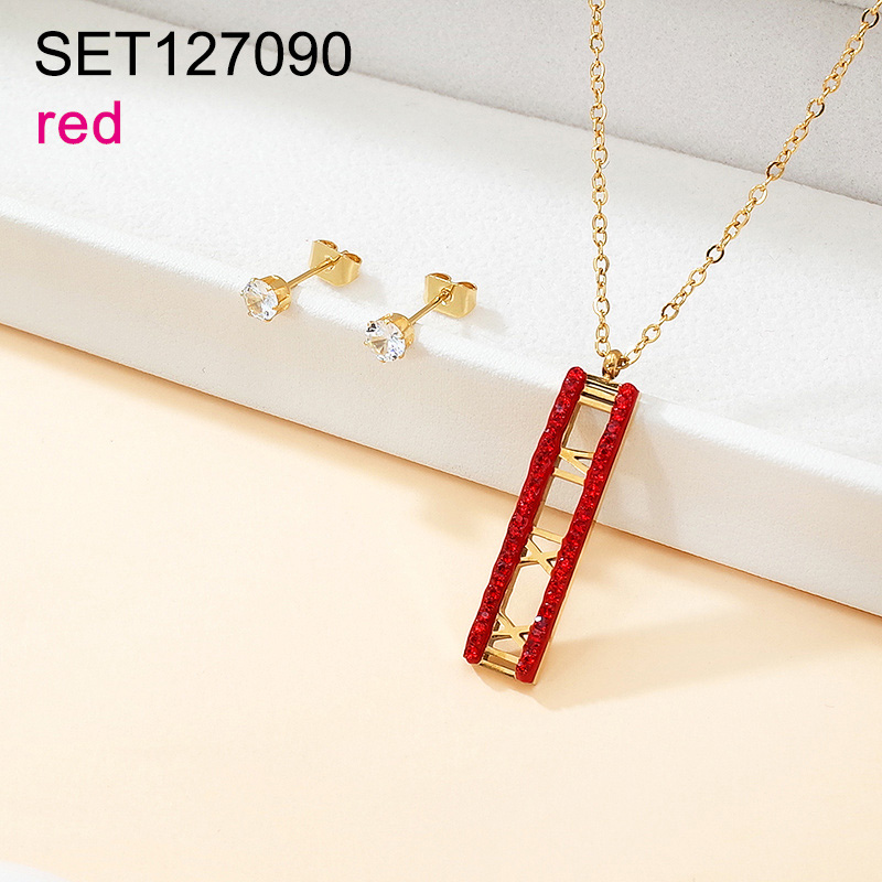 Home > Stainless Steel Sets > Semi-precious Stones Jewelry Sets > Level B Stainless Steel New Trendy Women Jewelry Roman Numeral Golden SET