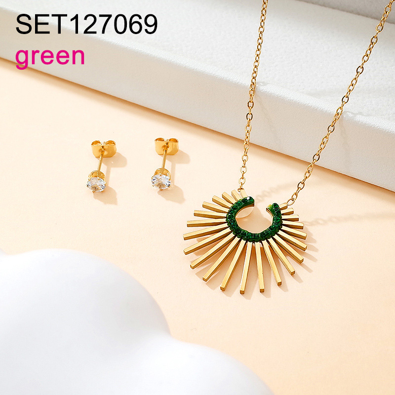 Home > Stainless Steel Sets > Semi-precious Stones Jewelry Sets > Level B Stainless Steel New Trendy Women Jewelry Golden SET