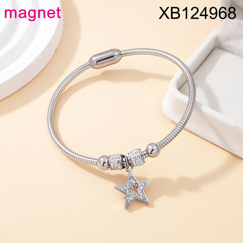 Level B Stainless Steel New Trendy Women Jewelry Star Steel color Magnet buckle Bangle