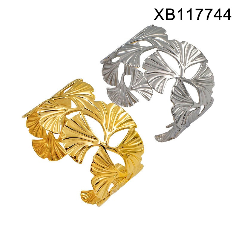 Level A Stainless Steel Jewelry New Trendy Ginkgo Leaf Open Bangle