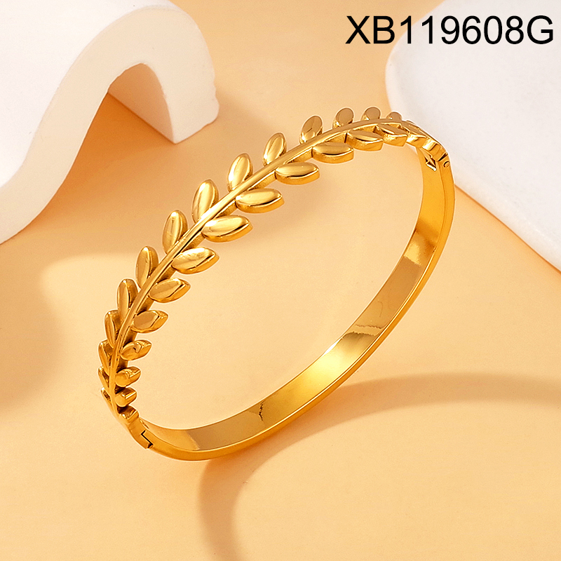 Level A Stainless Steel New Trendy Women Jewelry Leaf Golden Bangle