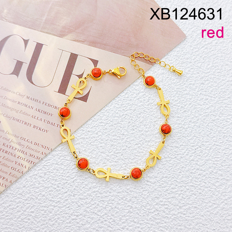 Level B Stainless Steel New Trendy Women Jewelry Egyptian Cross Golden Bracelet