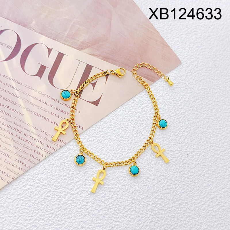 Level B Stainless Steel New Trendy Women Jewelry Egyptian Cross Golden Bracelet