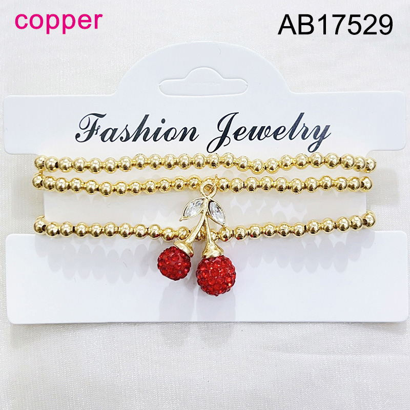 Level B Fashion Jewelry New Trendy Women Jewelry Niche Design Layered Jewelry Round Beads Summer fruit style Cherry Golden Elastic Bracelet;Material:copper (cobre)